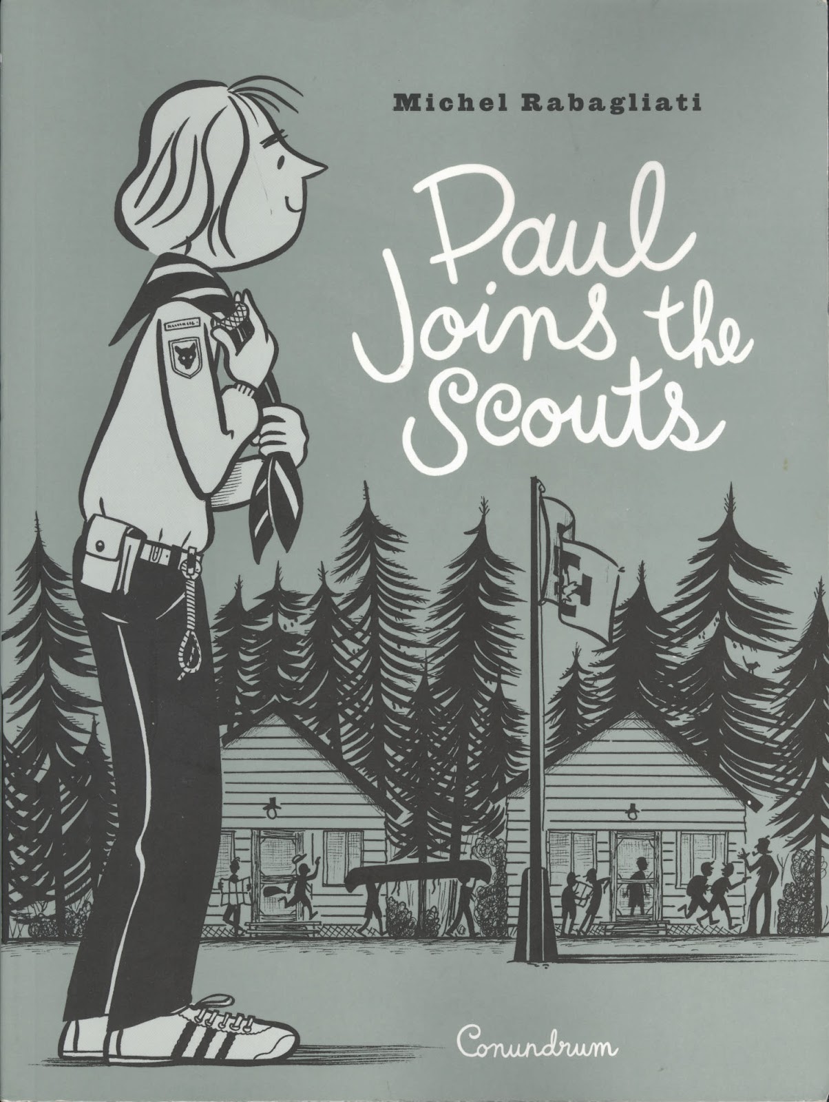 Each of the loosely-autobiographical volumes of Michel Rabagliati's Paul series tends to fold itself around a particular theme or phase of development. The Song of Roland is all about the acceptance of death. Paul Goes Fishing is about finding one's way in life as well as struggling with trying to create new life. Paul Moves Out is about becoming an adult. However, his newest book, Paul Joins The Scouts (the second volume published by Conundrum Press) doesn't seem to have a particular theme or goal in mind for most of the book. There's a subplot about growing up in 1970 Montreal and dealing with the reality of the Quebec separatist terrorist group the FLQ kidnapping members of the government, but that ultimately proves to be a red herring. There's a running subplot about a first romance for Paul, but that's not the meat of the story either. There's yet another subplot about Paul taking up cartooning, but that's somewhat integrated into his general development as a person through the Scouts. It's not til the gut-punch of an ending that we learn why Rabagliati has chosen to spend so much time talking about the significance of joining the Scouts, the boys he made friends with in his cohort of six, and the Scoutmasters who were kind to him. Rabagliati is paying tribute to their presence in his life at that time and mourning their absence, both their literal absence as well as the way it inexorably shaped his life, one that would become far more tumultuous in just a few years.