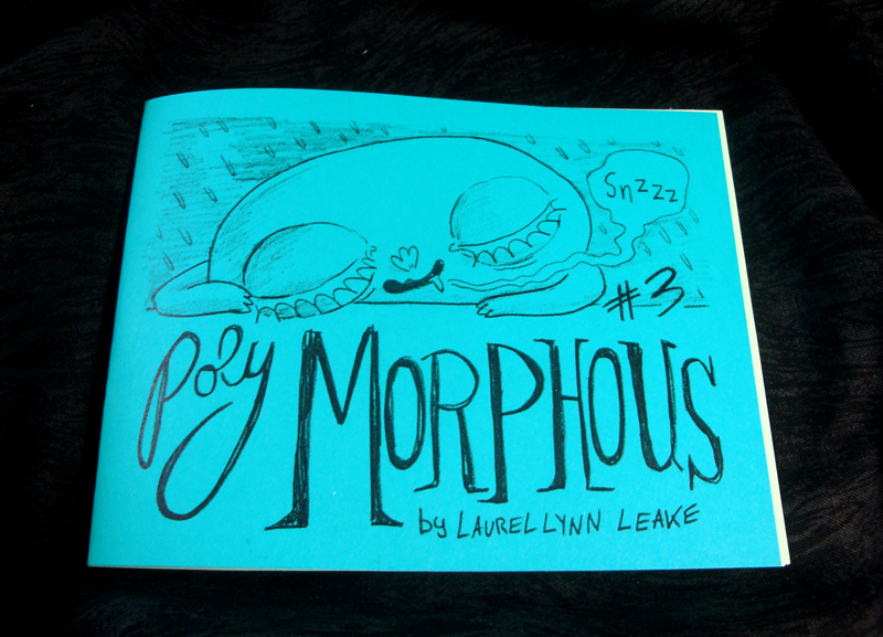 Poly Morphous 1-3, by Laurel Lynn Leake. Leake specializes in writing about sexuality and forest-related fantasy stories, and this little trio of minis combines those two interests. Each eight pager contains a poetic narrative caption along with images of Poly, a cute critter who explores different desires. In the first, Poly lives up to her name as she wants to "be the conduit for your current" for a couple in their forest. It's an expression of wanting to absorb and be part of the energy of a relationship, frustrated by the couple's total lack of interest in the idea. The inherent sadness of the narrative is mitigated by the cute and funny nature of the drawings. The second issue comes from an entirely different place, as Poly is consumed by obsessive thoughts that she worries might spread to her loved ones. This leaves her to be alone, even if solitude is the worst thing possible for obsessives. The third is about the tension between consciousness and sleep and the difficulty of inhabiting either world fully. Hear, the melting drawings do a spectacular job of supporting the text instead of working in tension with it, as Poly can't quite cohere to a single form. These are fascinating little workouts about mental health, curiosity and desire.
