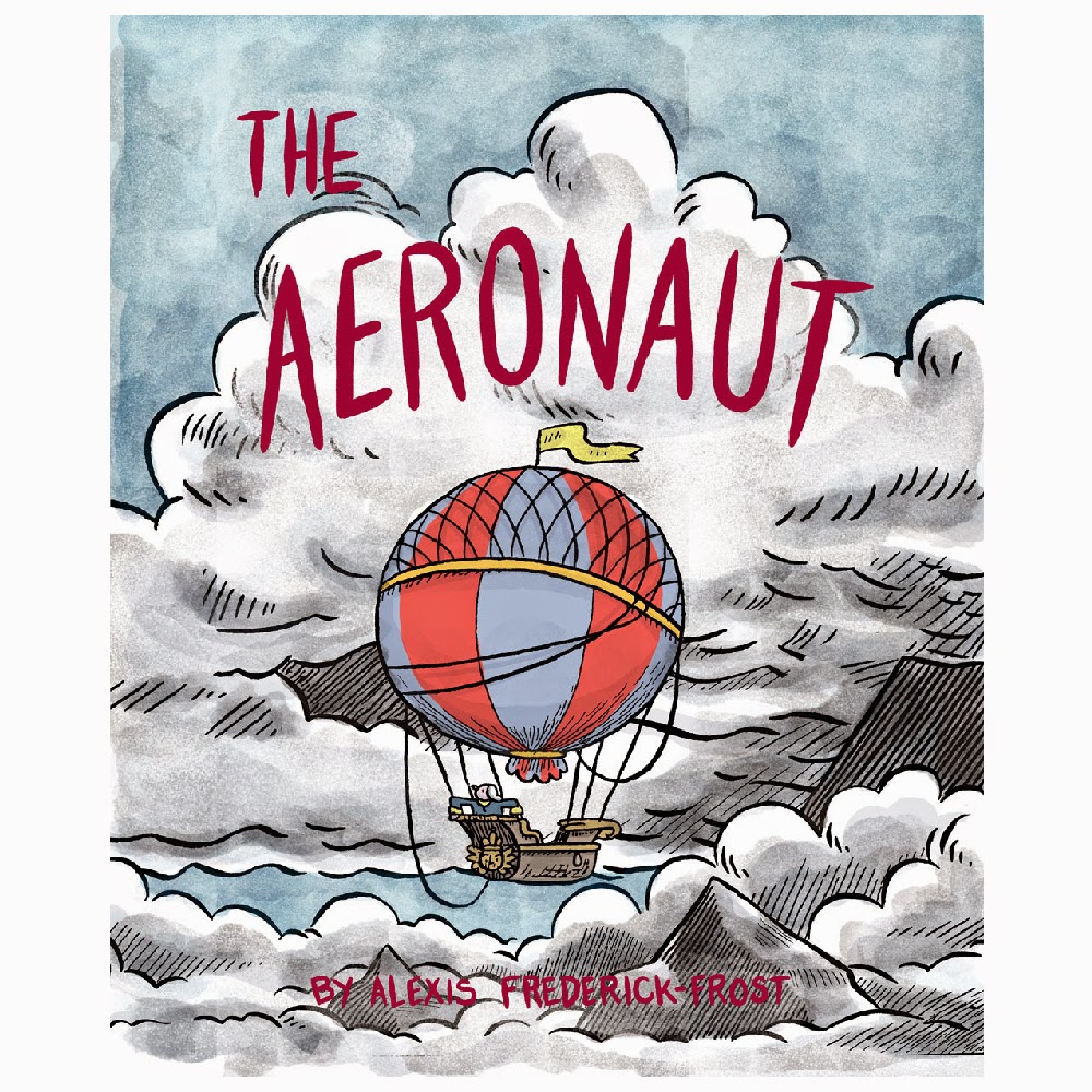 The Aeronaut, by Alexis Frederick-Frost. Frederick-Frost specializes in comics about travel adventures, so this silent account of a one-man balloon expedition to moon based on a variety of fanciful newspaper accounts is right up his alley. He's a master of economy on the page, as the quest is set up in the span of just three pages, leaving lots of room for the perils of the voyage itself. He goes from an information-dense four panel grid to a two panel set-up during the journey itself, giving the reader a chance to drift along with the balloon in question. An encounter with a large bird who thinks the balloon is one of his lost children is salvaged with a handy set of giant feathers, enabling the explorer to fly up to the moon, wherein he encounters gigantic and deadly vegetation, intelligent and friendly anthropomorphic beavers, and lighter-than-air dandelions that allow him to get home. This is a charming if slight bit of imagination, an extended and detailed doodle daydream inspired by the tall tales of past adventurers. It's lovely on its own but would look even better in a hopefully future collection of Frederick-Frost's short stories.