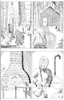 For Yolanda, her relationship with this trickster agent of change is far more complicated. Drawn to Baba Yaga, she is told to carry her bag to her hut. Yolanda is portrayed as a seeker of something, but Craw makes exactly what ambiguous. Baba Yaga's transformative gifts all have a price, as the wealth Yolanda receives from the jewelry is obviously outweighed by the toll it takes on her life, and the same is true for the lizards. I found this an interesting commentary on material possessions and wealth, especially since Yolanda never actually asked for a reward or money. Instead, the gift she receives at the end, when she finds Baba Yaga yet again, is the chance to run off with her, to permanently leave her life behind and transform it through the act of giving of her presence rather than asking for something. It's the gift of establishing one's own identity and creating a space of self-integrity, even in the face of total societal abandonment. Craw challenges the reader to think about gender, privilege and identity without making the importance of these ideas explicit. Indeed, the fabulist nature of Craw's storytelling actively deflects any sort of polemical quality his comics have without losing any of their thematic bite.