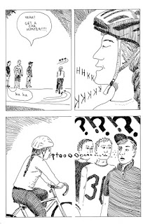 Hungry Summer, by Asher Z. Craw (Sparkplug Comic Books). Continuing my reviews of Sparkplug Minis, the mini this week is Asher Z. Craw's Hungry Summer. Craw's quasi-autobiographical comic Zebediah, was an unpredictable, absorbing and ultimately humane fantasy account of how he came to understand his nature as a trans person. Hungry Summer covers some of the same territory with regard to gender and identity through magical realism, but this time the focus is entirely different. The main character of the comic is a bike-riding, shape-changing Baba Yaga, the Eastern European supernatural figure. Always an ambiguous figure, encounters with her would often result in both good and ill. At the start of this comic, a bunch of dudes heckle her as she rides her bike, which results in her spitting on the loudest and rudest detractor. That spit renders him entirely immaterial and forgotten, as a ghost who did not actually die. Ghosts are at least remembered, but in his case, it's as though he never existed. A woman named Yolanda who helps Baba Yaga is "gifted" with continuously coughing up expensive jewelry. When she later complains to Baba Yaga about this gift, she is gifted with coughing up extremely valuable and rare lizards instead..