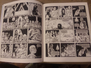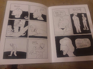 Andalusian Dog is a new series from Cockle, and I've read the first four issues so far. It's about a man who has a video game named after the famous Surrealist film by Luis Bunuel and Salvador Dali. Unlike that film, which was made purely on whatever images they could think of in an effort to shock and jar the viewer with dream logic, Cockle is crafting a narrative based on paranoid logic built on hidden knowledge. The first issue finds the narrator kicked out of an apartment for mysterious reasons, but he takes the Andalusian Dog video game with him. Turns out the game is a reality emulator and creator; it can recreate spaces that it's been in long enough. The second issue ties the video game into a wider, byzantine secret society/cult surrounding versions of the game that predated the video game. Immortality, arcane knowledge and fever dream logic are all part of it as Cockle alternates text and image in the 2 x 3 panel grid on each page. It has the rhythm of a game, just as the open-page layouts of the first issue felt more like floating through free, virtual space.