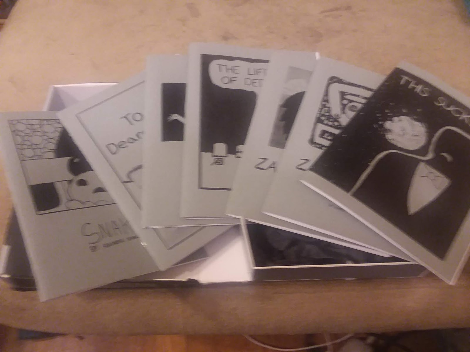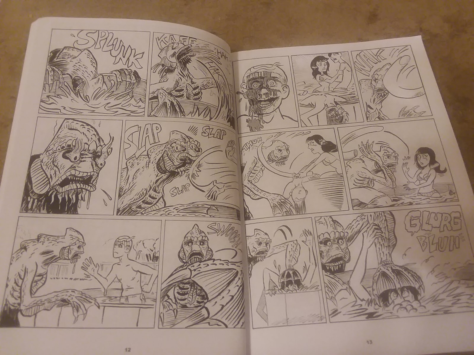 Kevin Uehlein's solo project was the immense minicomic Quit Rasslin' Me!, an epic deconstruction and parody of the WWE and pro wrestling in general. Featuring his anthropomorphic characters Disgusting Duck and Dumbass Dog, those two go from "back alley wrestling" to the WWE when the corporation was beset by steroid scandals, sexual harassment claims and being increasingly out of touch with the fans. As ludicrous as the action in this comic is (and it goes way over the top), virtually everything in it is based on something that actually happened. The Duck is chosen to be the new, hot babyface and even gets tabbed as the new champ, since he's cheaper than maintaining the older, Hulk Hogan-like mainstay. The Dog is chosen to be a heel who can reliably take chair shots to the head and get sent through tables, no matter the damage to his body. There's turn after turn here, as an arrogant Duck gets taken down by an Undertaker-like version of the Dog, who then decides to become a born-again Christian. This is a funny, silly comic with appealing, rubbery art that is entertaining in its own right in addition to being a dead-on satire of the WWE's greed and questionable ethics.