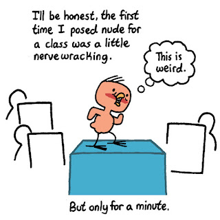 Art Model, by Mathew New. This webcomic is a fascinating mix of media in an autobio context. Using the cartoonish style he's best known for, New discusses his career as a nude art model, telling a story both about the process of the experience as well as the way he relates it to his feelings about his own body. New really spills some ink here, talking about a lifetime of negative body image that was only compounded when the only thing he liked (his thinness) started to manifest as an eating disorder. The story is interspersed with different friends of his and their drawings/paintings of him, done in a myriad of styles. New talks about how becoming an art model both required and helped him gain self-confidence. The essential point he makes is that the things one might hate most about themselves are the things that are most interesting to draw, which is a fascinating way of turning self-hatred into not just utility, but the potential for art.
