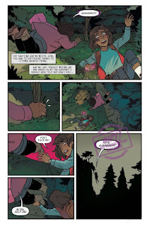 Vaughn was clearly made for projects like this, as she quickly sells the reader on the friendship of two girls (Mitra and Kyra, both people of color, incidentally) and also sells the reader on Mitra being threatened by a new girl, nicknamed "Flips". It takes exactly five pages to establish the personalities of the three leads, the interpersonal conflict that Mitra feels, and the catalyst for the plot: Mitra's phone being broken. When she mysteriously gets sent a new phone loaded with cutting-edge apps and cool filters, she sets the plot into motion. What makes the story work is that even though the reader knows that the phone is evil, Vaughn still keeps enough details mysterious and keeps the horror elements rooted in the central conflict of the story. Vaughn throws a lot of weird supernatural details at the reader in an effort to keep them off-balance, and it works.