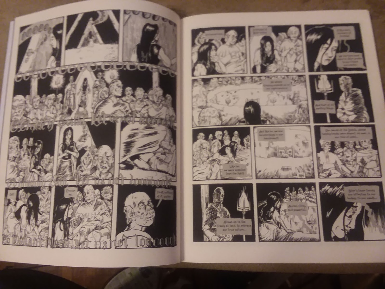 The story works because Antonowicz pays close attention to detail. He doesn't skimp on depicting the leprosy-like disease labeled as the titular "kiss", with boils, sores, scabs, missing body parts, etc. He makes great use of negative space throughout the comic, which is crucial since he uses a small twelve-panel grid as his default. There are times parts of the grid are collapsed to become a single, horizontal panel, but Antonowicz keeps things moving using this format. This is a visually striking comic first and foremost, allowing the character and plot to reveal themselves slowly while the reader takes in visual details. I'm eager to see the payoffs for a variety of characters and stories in the next volume.