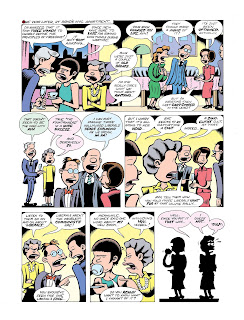 Of course, even though Bagge clearly admired many of her ideas (she wrote for an African-American newspaper and acknowledged the unjust nature of Jim Crow laws and the ways in which black people were persecuted by police, for example), he had no interest in making her out to be a saint or have all of the answers. Indeed, there's a scene where she and Ayn Rand not only have significant disagreements as to atheism, Lane became immediately suspicious of Rand cultivating a cult of personality. In this Bagge got at the heart of what made her an interesting character. She was more interested in ideas than notoriety. She preferred a dry but forceful delineation of ideas (her book Credo) to Rand's dressing it up in fictional form. She embodied the best ideals of the frontier spirit: a powerful and relentless sense of individualism combined with a generosity of spirit and understanding of teamwork as a necessity for survival. In many respects, this is Bagge's own statement about his beliefs in the form of this woman, who was closer to an anarchist than anything else.