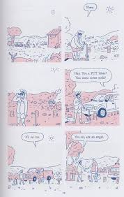 For a moment, there's a whiff of a happy ending. Tasha missed her family and spent a few idyllic days with them. When Tom asked her to stay, she imagined what that life would be like. There was a page with a 12-panel grid containing seemingly pleasant images of what daily life would be like: the rooms she'd be in, the edge of the property, doing laundry, etc. Taken as a whole, it resembles a cage or a prison door. Even trying to imagine picnics in wide-open spaces with her kid didn't diminish that sense of anxiety. Her aversion to routine is so intense that she had to leave for her sake and the sake of everyone else. The love of her daughter required something of her that she couldn't give. So many of the visuals in the book are either about wide-open spaces and freedom or restrictive spaces, like a bunny cage. Tom is a locksmith who could force or finesse his way through any barrier except his wife's heart. Though the story is a spare one, both cartoonists put a lot of thought into its emotional narrative, and the result is surprisingly resonant.