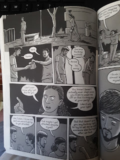 Warner's own depiction of his breakdown and near-suicide attempt is harrowing. It was unsparing and used the full range of his considerable skill as a draftsman. For weeks, he had heard voices. He had seen threatening faces. The whispers grew louder on that night, and then eventually they passed. It is no coincidence that he had decided to do a story about his high school experience, releasing that trauma a little. The importance of art in Warner's life is one of the big emphases in this book; he never comes out and says it, but it's obvious that art saved his life. It's also clear that writing this book is something he had to do. Everything that happened was too big to wrap his mind around, but he couldn't help but try to do it anyway. Warner tries to give the reader a sense of Beirut and its history, what its people are like, and what it's like to be a student abroad. Then he tries to do this as a completely unreliable narrator in a volatile political situation while on drugs. It never quite coheres, but neither did his experiences. A bunch of horrible and beautiful stuff happened to Warner. He made a number of bad decisions and hurt some people's feelings as a result. He made it through as best as he could, and came clean with regard to trauma and mental illness through his art. If nothing else, he paid a debt to himself and others by being open about what happened to him in Beirut, bridging the gap between journalism and memoir in a graphic, compelling, and expansive manner.