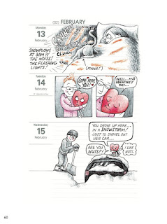 Bartholomew's most ambitious work is the expanded version of her thesis, Quo Vadis: Where Are You Going? That title is a clever play on words, as Bartholomew used an academic planner to do her daily diary strips. That meant most strips for most days were a panel or two at most, so there was some vagueness with some of her bad days. For this updated version, she added "intermissions" which spelled out some of the more emotionally tumultuous incidents in her life. That added a lot of depth and intimate detail to her day-to-day feelings. The other title for her thesis was Begin Again, and that's reflected in this being very much a post-divorce journal, even if it had ended several years prior. Bartholomew offers few details as to why her marriage ended, but her ex's role in her life, especially with a young kid, is clearly a thorny point of contention. There's a lot of unprocessed grief evident here.