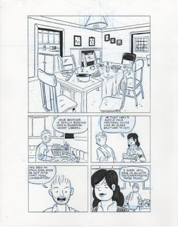I can't quite yet tell what kind of cartoonist Wilson is going to be. He's extremely skilled in some areas, but certain habits of illustration have to be un-learned before one becomes a good cartoonist and visual storyteller. Wilson is very funny, especially with regard to cringe humor, and I could see him going in that direction. The stuff he wrote about his family and friends is also funny, in an often bleak manner. CCS is a perfect place for him, because cartooning and storytelling are the bedrocks of their curriculum.