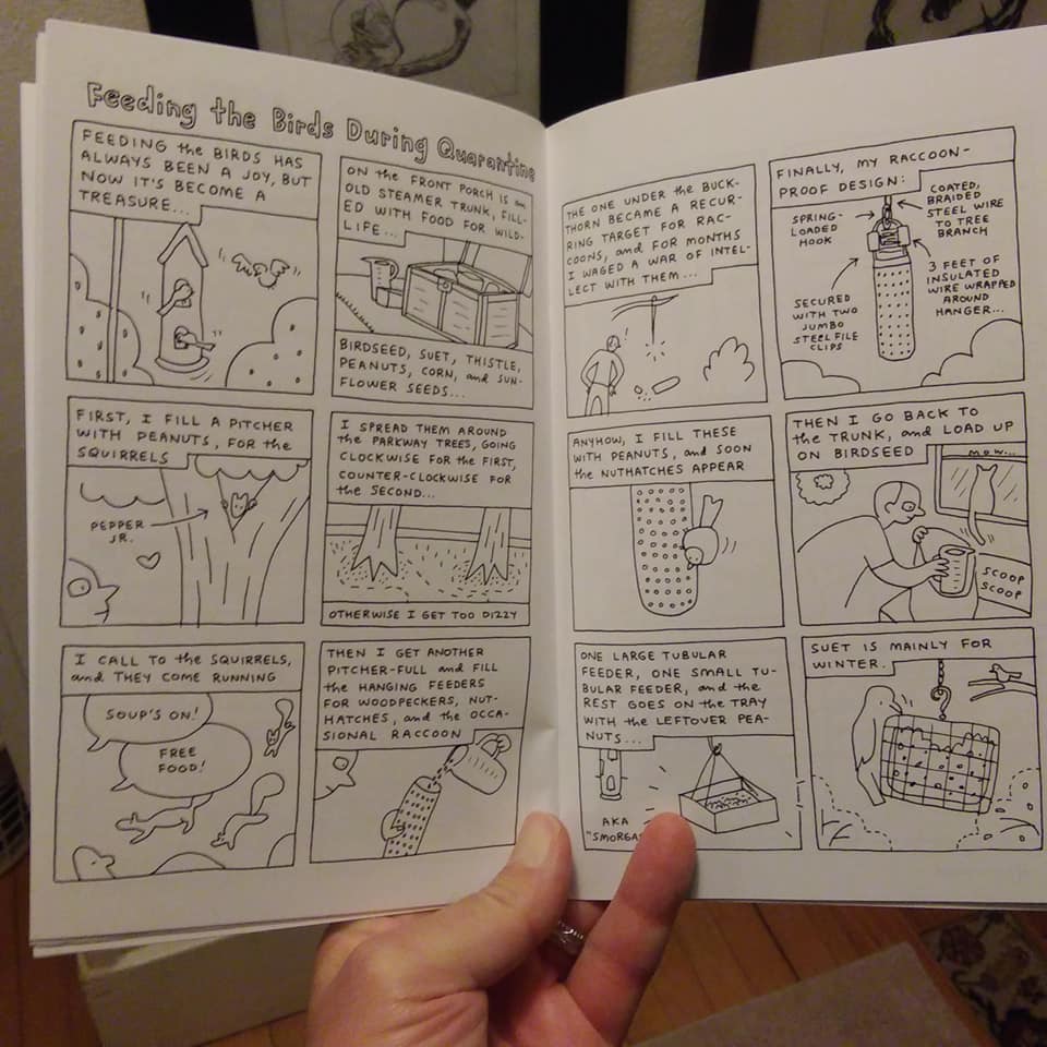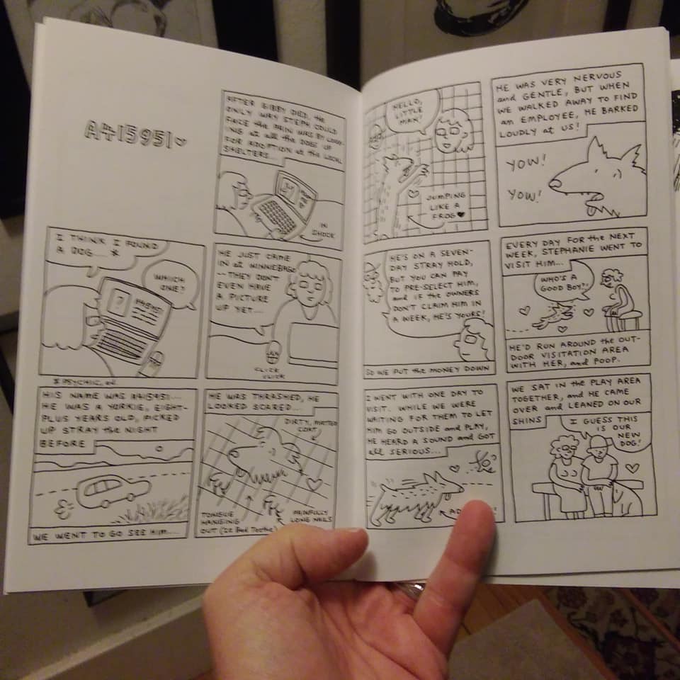 The Brideau-edited anthology Spiny Orb Weaver #1 plays on his fascination with the local creatures, as this is a spider that spins beautiful, intricate webs. It's a fitting metaphor for cartoonists. There are three features. The first is a long story by Jessica "Miss Jaws" Garcia titled "Just A Walk Around The Block." Her character design is superb, as her female lead has a powerful presence that provides visual irony given how socially anxious she is. The story is a dialogue between her and her dog, who chastises her inability to make friends and allow him to to get to interact with the world. When he later loses control when he sees another dog, he reveals that he was never socialized with other dogs and is afraid of them...much like she is. In the final scene, where she makes friends with someone who pets her dog, Garcia pulls back. After a story full of fairly tight close-ups that illustrated how closed-off her world was, that final scene framed her as part of the larger world.