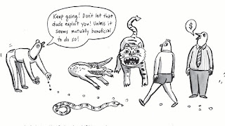 I've followed Drew Lerman's career for a while, and his Roy & Dav characters were particularly delightful in this anthology, channelling the golden age of cartooning in terms of their speech patterns and ragged-line. Brideu's "Critters" was interesting to read because for a transplanted Miami like him, the preponderance of fauna not found in other parts of the country can be overwhelming. I miss the friendly gecko lizards, personally. Miriam Rae-Silver's "HOA" speaks to both that fauna, including the invincible, omnipresent gators, as well as Miami's obsession with wealth and appearances. P.C. de la Cruz's fantasy of his uncle being attacked by a python on a fishing trip speaks to a real presence of these snakes who have no natural predators infiltrating the Everglades.