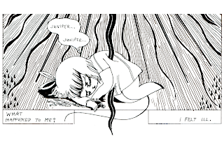 The stories by Luke Howard and Ben Horak are other good examples of this. Howard's "Dance Yourself To Death" is perhaps his most original, best-realized story to date. Using a slightly flat line and character design style, this story of the dark ways in which artists gain inspiration has a powerful payoff at the story's climax and then another shock in its denouement. In an anthology filled with downbeat and often disturbing stories, it was the perfect capper for the book. Horak's "What're Fiends For?" is a more broadly comic story, but no less dark than Howard's work. It's the ultimate example of a well-meaning but utterly destructive friend. Horak impressively manages to up the ante of menace in a rhythm not unlike that of a Looney Tunes cartoon, only with a viscerally disturbing ending.