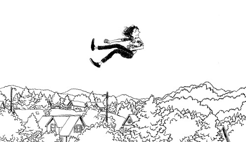 It's hard to describe McFadzean's own aesthetic sometimes, but "personal and unsettling stories set in isolated locales" comes close. His "Good Find" is a slice-of-life story about two kids looking for stuff in an abandoned (and possibly haunted) house. What goes unexplained is that every character is grotesquely disfigured, with various boils and growths on their bodies. It's meant to throw the reader off-balance, to given them something to think about in addition to the pleasant little escapade they just read. Along the same lines is No Tan Parecidos' "Indian Rope", which is a story about waiting with each character rendered in a distorted and elongated fashion. It's more a fragment than a story, but it adds to the book's atmosphere.
