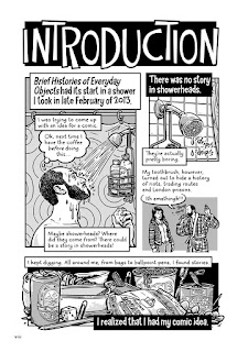 Andy Warner's The Complete Brief Histories of Everyday Objects is a skillfully assembled mini that uses a consistent design model to deliver interesting stories about the origins of common objects. He manages to find intrigue in objects like ballpoint pens (which initially sold for an outrageous $12 apiece as part of a speculative demand bubble), cinnamon sticks (which were protected and monopolized by Arabs for nearly 3000 years thanks to a monster story) and the safety pin (created in a rush to settle a debt). I especially liked his piece about the bath tub, which is less about the tub and more about legendary writer H.L. Mencken gleefully spreading misinformation about its origins. This makes him the father of fake trivia. Warner then ends each two-page piece with bonus "fun facts", cramming additional research into one row and creating punchlines with single panel commentary.