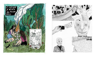 Other stories focus on being alone vs being with someone and the sacrifices one makes in either scenario. Christopher Adams' evocative silent story about a priest going about his day, hanging out with members of his congregation, speaks to the nature of the solitude of his position and the peace he has ultimately made with it. Hannah Blumenreich's story of a lovable pre-teen oddball who earnestly believes that she is psychic is endearing precisely because of her lack of self-awareness, even as she makes subtle shifts in attitude when reality dictates it. Joseph Remnant's excellent story about a guy crushing hard on a girl he sees at a bookstore and subsequently talks to at an art show is funny because of the quite deranged nature of obsessiveness overriding reason. The fact that this story gets a happy doesn't feel like a cheat so much as an indication that the leads occupied the same place in their circle of friends and really did find out by accident that they were perfect for each other. Noah Van Sciver's account of Richard & Mildred Loving's struggle to have their mixed-race marriage accepted in the south is especially poignant given that their union was opposed on many of the same supposed moral grounds as gay marriage is today. Jeremy Sorese's story about his divorced parents remarrying provides the structure for his own mixed feelings about marriage in an elegant and stylish series of highly stylized images. He gets at an interesting point: even if gay marriage is a big deal, why should a 23 year old be worrying about marriage anyway?