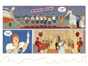The gem of Toon's fall batch is Rutu Modan's Maya Makes A Mess. It's a pure visual joy and has some of Modan's best-ever cartooning. It's about a messy little girl with bad table manners who is called to eat with the Queen, and her uncouth nature (done because it's more fun to eat with your hands) has a surprising effect on the Queen and her court. Modan's line is crisp and clear, and her already highly-developed color sense makes every page a treat, without going into too much pyrotechnics. There's also a running gag at the bottom of the page that appears to simply be a visual flourish at first, but is revealed to simply be a time-release joke. I love that this book does not desire to teach any sort of lesson about good manners but rather is all about pursuing a joke to its logical end.