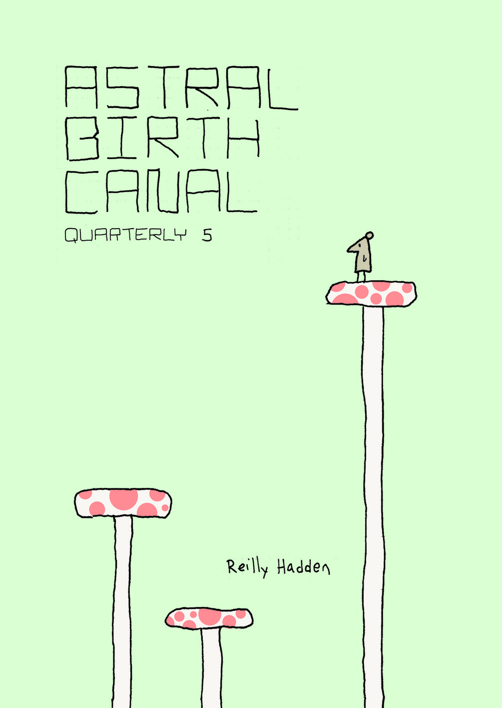 Since ending Astral Birth Canal and after just a couple of issues of Astral Forest, his fantasy series, Hadden has spent much of his time on a different project: the adventures of Kricket The Cat. These are all-ages fantasy comics with a wonderfully gentle sense of humor that rely on the reader's desire to hang out in this particular world. Indeed, the plots, such as they are, are cursory at best. Instead, we are presented with the things Kricket does on a particular day and the people that he meets. An early version of this from 2017, Krikkit Goes Outside (note the different spelling) is drawn with a spareness resembling John Porcellino, as young Krikkit meanders around the forest. He searches for mushrooms, chases a frog, and rides down the river on a raft. The only use of color is a hand-drawn yellow for Krikkit's fur. There's a simple pleasure to be found in just seeing how Hadden lays out each page, leading the reader on in some pages dominated by their negative space and on others with simple drawings but a dense layout.