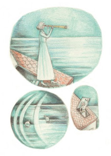 mini-Kus! #30: Logbook, by Terhi Ekebom. This is a horror comic whose threat initially feels ephemeral and eventually becomes all-encompassing. It's all the more frightening because the threat, succumbing to a darkness that doesn't just envelop a person, it scratches them out, feels like a metaphor. It could represent a kind of toxicity when a person is beset by mental illness or addiction, or has become abusive. Regardless, in this isolated house in the ocean (shades of Dan Clowes' David Boring), a cure is attempted in the form of light from plant-like ocean pods, to no effect. The two women who are the comic's protagonists have to escape the spread of the darkness in a boat, with the final panel a chilling indicator that all hope was lost. Finish cartoonist Ekebom makes extensive use of colored pencil, eschewing line in many instances in favor of having color both tell the story and add shading. This was one of the best mini-Kus! comics I've read in the series, both in terms of the power of its storytelling as well as the way it packs a lot of in very few pages. It was just the right length to reveal its threat, generate hope for a cure, and then reveal just how doomed its protagonists were.
