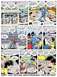 The best new story t is "I.M.P.", a short biography of maverick critic and writer Isabel Mary Paterson, whose ferocity and wit made her the terror of the New York literary scene in the 1920s and 1930s. At one point a friend of Ayn Rand and a woman who was constantly amazed by the rise of technology as a way of man establishing its dominance over nature and fate, Paterson was an entirely independent thinker who owed no allegiance to any political party or system. Bagge manages to capture the essence of the historical literary figures mentioned while still maintaining his exaggerated, curvy and rubbery line and smart-ass sense of delivery. Bagge also has a knack for writing with affection about those he admires while presenting them warts 'n all. Wrapping things up with a funny strip about his relationship with Ayn Rand's works, this new edition from Fantagraphics is tremendously satisfying, even if (and perhaps especially) if one is at odds with Bagge's political beliefs.