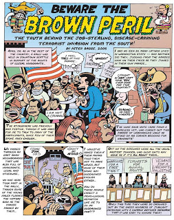Everybody Is Stupid Except For Me, by Peter Bagge. In my review of the first edition of Bagge's political strips from Reason magazine, I noted that the longer pieces were more thoughtful and interesting than some of the shorter and punchier single-page strips that lacked the even-handedness of the longer stories. In this revised edition, Bagge dropped a few of those shorter strips in favor of adding longer stories, and the result is an even stronger book. Bagge is a libertarian in terms of philosophy, but is quite willing to take on Libertarian party points of view. While many think of libertarians as being gun nuts or obsessed with legalizing drugs (two points of view that show how libertarians dip into both right and left-wing ideas), Bagge's story "Brown Peril" highlights another important libertarian ideal: free and unimpeded immigration. Bagge actually does the work of a reporter and goes on the scene to political events, in this case a hispanic, pro-immigration march in Seattle. Using his quick, merciless wit, Bagge skewers those who are opposed to free immigration and reveals it as another form of othering. "Shenanigans" sees Bagge talk about the ways in which the oldest trick in politics (intimidating voters at the voting booth) was in display in Seattle when the Republican party had a schism between the old-school Mitt Romney supporters and the younger Ron Paul backers. Bagge was diligent in writing about how the backers of the other GOP candidates were in on the freeze-out at first, until they realized the Romney camp pulled a double-cross on them. Bagge really lifts the lid on the garbage pail of politics here, revealing it to be every bit as petty as one might suspect.