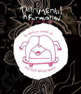 Detrimental Information, by John & Luke Holden. This is another collection of zines, this time by the Holden Brothers. They've been linked with 2dcloud since the earliest days when all they published was the Good Minnesotan anthology. The collection has a nebulous quality that's not quite prose and not quite comics. The prose is hand-lettered, with big squishy letters that are not filled in. The illustrations are all variations on the monstrous, lumpy, naked little creatures that sometimes actively address the prose and sometimes go off in an entirely different direction. Each chapter has multiple vignettes that generally fall into three categories: stories about growing up, stories about people the Holdens may have met, and stories about working with the mentally disabled. The Holdens have little in the way of a filter, and many of the stories don't exactly put the protagonists in a flattering light. To be sure, this is very much a "point of view" comic that basks in, the essentially grotesque and visceral qualities that life has to offer. It's gross but real, across the board.