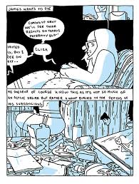 All of this is in a story about disease and depression. James is a sign painter and artist suffering from a debilitating parasite. This is a comic about how mental and physical illness can form a devastating synergy, with each affecting the other in turn. James is in pain, a feeling that initially inspires him to do paintings about this experience. However, given a chance at a cure, he opts not to take his medicine and stops doing anything but his work murals. He becomes suicidal by way of self-neglect, wanting to die but not being willing to actually kill himself. He's content to simply stop taking of himself in the hope that he'll be gone at some point. The blue wash for this comic speaks to that melancholy, as the reader is forced to watch him experience intense, unsettling pain along with losing control of his bowels. It's a resignation that's not just lacking a will to live, but rather it's almost a kind of self-punishment. James feels like he doesn't deserve to live because he has nothing to offer as an artist (and by extension, as a person).