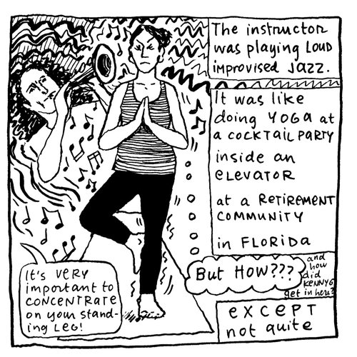 Making Time is a collection of diary comics, from the first snow of November through February. In Vermont, winter is a powerful entity, and many of these comics revolve around struggles with the weather. Most of them are Kochalka-style: four panels, with a punchline of sorts in the final panel. Dietrich's line is more careful and assured in these comics, but it's clear that spontaneity and expressiveness are her goals. That said, Dietrich jams every panel with detail, hatching, and other decorative details. The result is cluttered but in a good way. One gets the sense of just how her life is cluttered and bursting with happenings. The comics are quiet and meditative, almost as a way of recovering from the frenzy of childcare, workouts, 5K runs, and knitting baby blankets. These comics are frequently funny, like when Dietrich grouses about muzak being played during a yoga session. These comics are engaging because Dietrich has a distinctive authorial voice, and it's clear that she took quickly to comics because she was eager to find a new way of expressing herself.