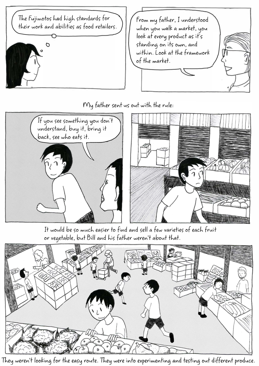 That was the background that led Nakahira to discover Bill Fujimoto, who inherited and expanded his father's business as a produce grocer in Northern California. The fascinating thing about the practice is the intersection between capitalism and art. For Fujimoto, the goal wasn't to simply sell as much stuff as possible. Instead, it was to sell the right things and knowing what that meant. In many respects, he was a produce critic and editor, which meant that he was constantly looking for new and interesting small farms and for the freshest, most interesting produce. It meant understanding weather, soil, and many other trends. What he didn't realize is that he was at the center of not just a local food revolution, but the beginning of a trend that would extend not just to restaurants, but to daily living.