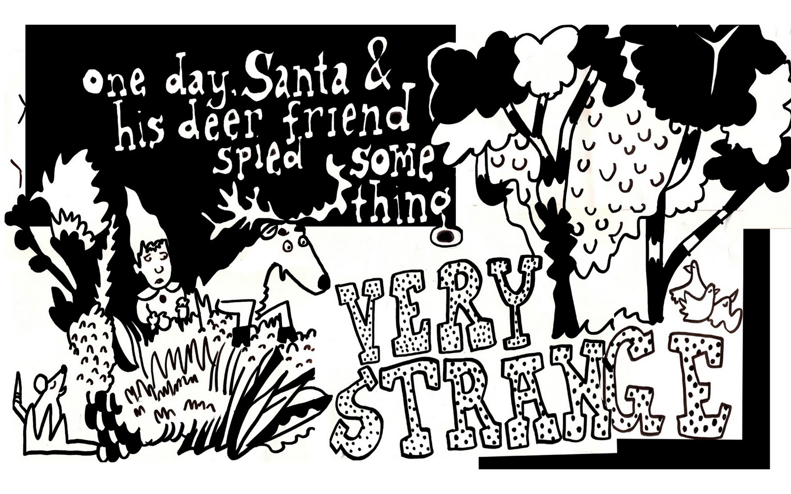 Matthew Phelan's story and Bruwelhelde's "Party" are far more conventional narratives, with the former in particular feeling somewhat cliched in creating its high-stakes future-capitalist atmosphere. Sara Lautman's strips are scribbly to a degree where it can be difficult to engage them, though I was fascinated by the nature of that scribble. Katie Fricas' "Santa's First Christmas" is an odd duck even compared to the other stories, employing white-on-black psychedelia with an immersive quality as its letters become part of the art. All told, this is a surprisingly coherent minicomics anthology with nice production values and differing but complementary styles of art and storytelling. The only real negative is that several of these stories were the first chapters of longer stories, which is a pet peeve of mine for anthology series, with some exceptions. In what was otherwise a cohesive reading experience, leaving the reader hanging was bothersome, especially since one was left wanting more.