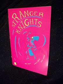 Stranger Knights, by Bill Volk, Mary Soper & Casey Bohn. This is a slight but amusing anthology edited by Volk, an artist who seems drawn to a grungy and unglamorous version of folklore and myth-making. All three feature smart-ass and off-kilter superhero stories. Volk uses a clear and clean line in depicting the adventures of Shamash, the Mesopotamian god of justice. Midway through, the story takes a left turn as he must go home to ask a favor of his grandfather, Enlil, who insists that he try some potato chips. Despite the story's whimsical trappings, it has the tight plot of a Silver Age Marvel story, right down to the interpersonal squabbling of Shamash's superhero teammates in the "Stranger Knights". That light touch, combined with just a touch of angst, continues in the Volk-written, Soper-drawn story of Incantrix X. This is a sci-fi superhero story about a character who uses her mind-clouding abilities to defeat alien dinosaur men but is given a prophecy about turning evil in the future. Soper's line is expressive and exceedingly fine, which gives the whole story a breezy feel. Bohn's work is similarly quirky, as he depicts the adventures of a superhero who uses an electric guitar to fight evil. His art is crude, not unlike a Golden Age cartoonist who had a week to crank out a nine page story, but it has a primitive energy and stays remarkably clear. I wouldn't say that Stranger Knights is a remarkable comic, given the scores of fusion-light superhero comics that have emerged from the alt-comics scene in recent years. I will say that it's one of the more enjoyable comics of its kind that I've encountered, especially in the way that it kept its mood light while being entirely aware of the sort of story it was telling. This looks like it will be the first issue in a series, and I'd like to see what Volk can do in future issues.