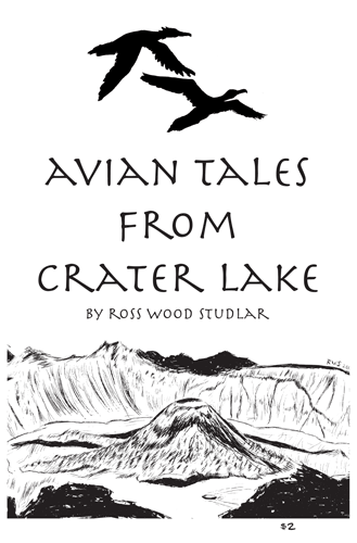 Avian Tales From Crater Lake, by Ross Wood Studlar. Studlar is a park ranger who also happened to attend "cartoon school". Unsurprisingly, his subject tends to be nature. In terms of his drawing, this comic is a step forward from the previous comic I reviewed of his, The Raven And The Crayfish. His line is no longer quite as labored; drawing directly from nature is a nice match for the looseness of his line. This eight-page comic is a collection of small observations of birds at Crater Lake, from young eagles' leaps out of their aerie to the way diving ducks plowed several dozen feet into the crystal-clear lake in order to devour fish. Studlar also has a prose piece connecting mythology and folklore to the unpredictable and threatening nature of storms on the lake. This is a slight comic at best, one that hints at many more interesting anecdotes and observations to come. Studlar is clearly still trying to figure out just what it is he wants to do as a cartoonist, and his eye and interests are so different from that of the average cartoonist that he has the potential to do some interesting work. A book full of these stories and observations, linked together with prudent editing, could produce a unique comics artifact. As long as he continues to use a more restrained line for both his true life and mythological interests, that book could be a compelling read.