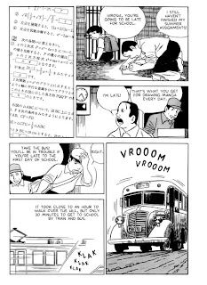 There's a delightful purity in Tatsumi's obsession with reading and drawing manga, especially when he's able to meet with the great Osamu Tezuka (the most influential manga artist of all time and a standard top-five pick for greatest cartoonist ever) and gain confidence. Throughout the book, Tatsumi is a man in the right place at the right time, even if it leads to the directionless "drifting life" of the title, where one is at the whim of one's publishers. As a result, he's able to publish an astounding number of books (mostly aimed at children) in a ridiculously short period of time, even as he becomes dissatisfied with what he's doing and longs to do full-length, intelligent comics--at the very least, comics for teenagers and not pre-teens.